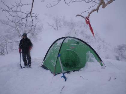 1日は鹿島槍ヶ岳に向かう稜線にいました。残念なことに日の出は見えませんでした。暮れから連日の雪でした。