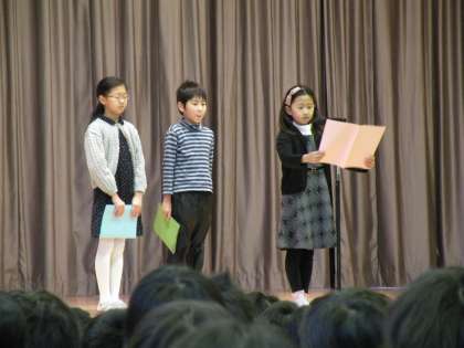児童代表は3年生です。堂々を発表しており、素晴らしいと思いました。(校長 箭内)