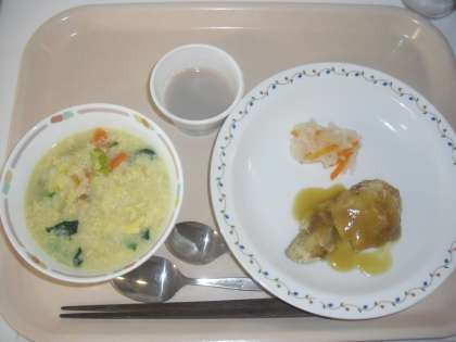 今日から3学期の給食が始まりました。献立は、七草ぞうすい、牛乳、鯖のゆずみそかけ、紅白なます、黒豆ゼリーです。