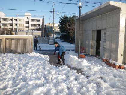 学校運営委員の水野さんが息子さんを伴って雪かきに来てくれました。ありがたいことです。