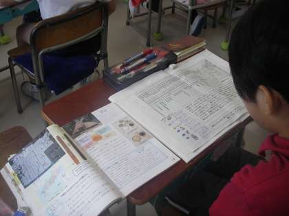 710年平城京、その頃の人口は10万人だそうです。人々は竪穴式住居に住んでいました。子どもたちは先生から配られた資料や、資料集を見ながら学習を進めていました。