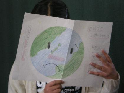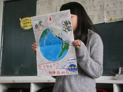 5年生は総合で「環境」について取り組んでいます。今回は、地球で起こっている環境問題についてポスターを作り、発表しました。「見て、分かる」ということを目標にデザインを考え、その後、自分が伝えたいことを文章にして発表原稿を作りました。