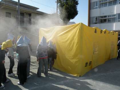 今日は、6年生は起震車体験をしました。1年生から6年生まで全児童が煙中避難訓練をしました。私も煙の中に入りました。前が全然見えません。腰を落とししゃがんで歩くと前方が少し見えるました。この体験をいざという時に生かしてもらいたいです。(校長 箭内)