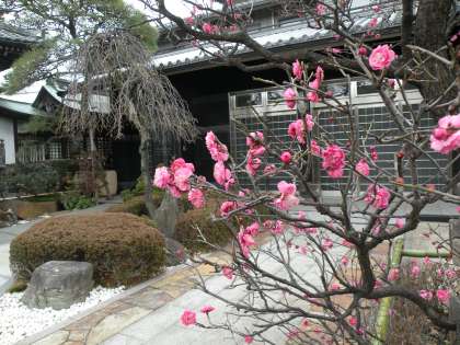 素敵な和室を提供してくださるのは無量寺です。無量寺の庭にはもう紅梅が咲いていました。
