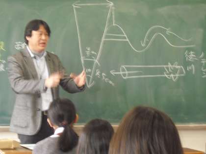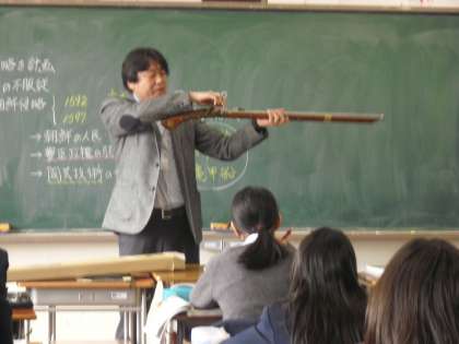 今日は火縄銃にかかわる授業です。長條の戦いで3段構えで火縄銃を使用したのは本当なのか。実際はどのように使用したのか。そんな授業のようでした。(校長 箭内)