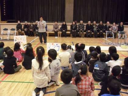 1年生は、2月20日(水)3、4校時に、地域の方々に昔遊びを教えていただきました。この日のために、司会進行、看板作り、プレゼント作りなど、いろいろな役に分かれ、全員で協力して取り組みました。寒い日でしたが、16名の地域の方に来ていただき、子どもたちはとても楽しい時間を過ごすことができました。ありがとうございました。