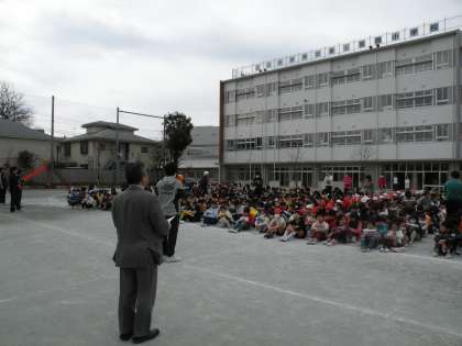 今年度最後の避難訓練でした。今日は出火により放送機器が使えない状況での訓練です。放送が一切使えないない中、火事の知らせを受けた子どもたちは先生に引率されて静かに校庭に避難します。話し声が聞こえず、本当に静かに速やかに避難する子どもたちの行動をみて今までの積み上げの成果を感じました。素晴らしい行動・態度でした。命を守る訓練は来年度も色々な状況を想定し訓練を重ねていきます。(校長 箭内)