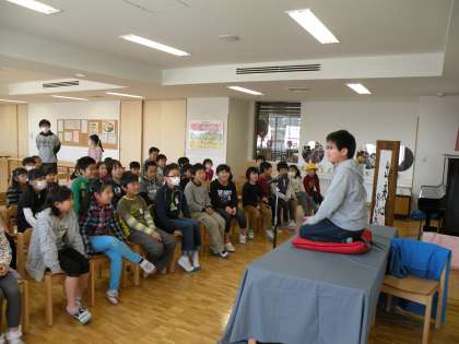 二人とも落ち着いて演じています。お客からは笑い声が上がります。保護者の方も応援にかけつけてくれています。明日はお休みです。次は3月13日です。(校長 箭内)