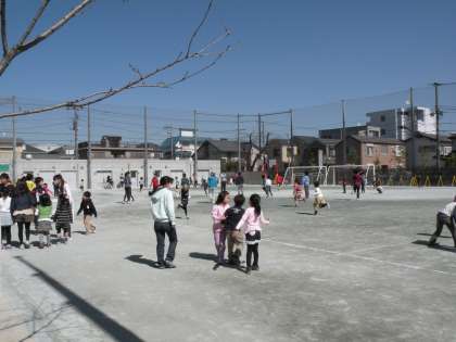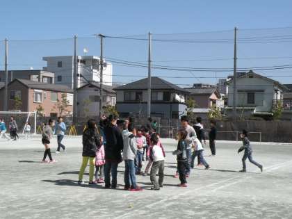 今日の4時間目、校庭では1年生が6年生のお姉さんお兄さんにまとわりついています。今日は6年生と1年生の交流活動の時間なのです。1年生はとても楽しそうです。6年生もまんざらではない表情です。あと9日で卒業式です。1日1日がいとおしい日々となっています。(校長 箭内)