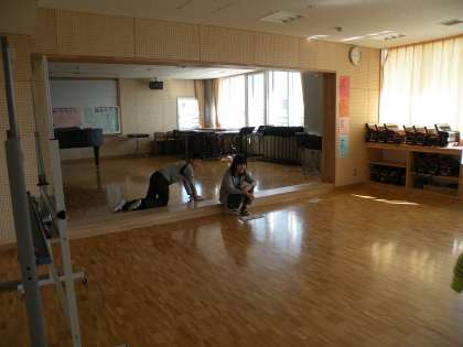 6年生の奉仕活動は廊下、階段だけではありません。自分たちが使ったところ、家庭科室、図工室、音楽室にも出向きます。