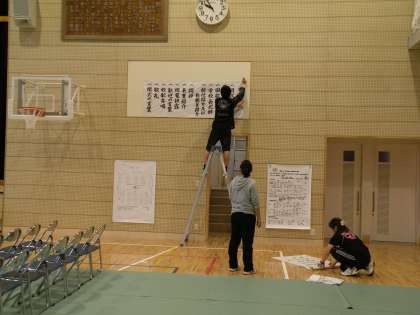今日は入学式準備の日です。6年生が登校しました。各教室の机、椅子を運んだり、体育館で会場の準備をしたり、1年生の教室の飾り付けなどを頑張ってくれました。いよいよ月曜日が入学式です。学校の準備は整いました。先生方、主事さん方も1年生を迎える心の準備も整いました。(校長 箭内)