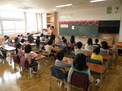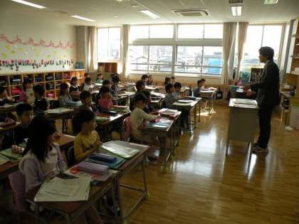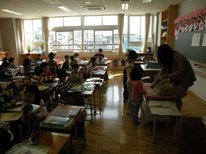 1年生のクラスはみなしっかりと先生の話を聞いています。まだ、緊張しているのです。これから出来るだけ短い間に学校生活のルールを教えます。生活の仕方を学びます。