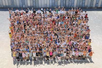 最後は校庭で全校児童の集合写真を撮りました。
