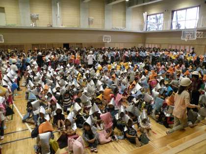 地震のあり、家にいるときはそのまま待機します。その後の動き、情報はメール、ホームページでお知らせすることになります。