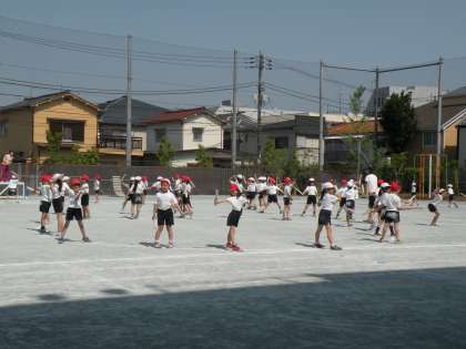 運動会が近づいてきています。校庭で練習しているのは2年生です。子どもも一生懸命ですが、それよりも先生方が一生懸命です。気合が入っています。子どもの力を引き出すのは先生方の意欲、気合、本気の取り組みです。(校長 箭内)