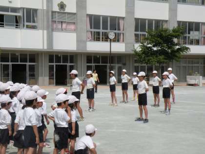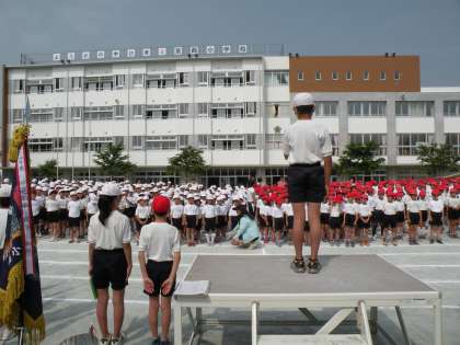 今日は運動会の全体練習でした。開会式、準備体操、閉会式、応援などの練習をしました。応援団はなかなか恰好がいいのです。今年の勝負は赤が勝つのか、白が勝つのか、両者のせめぎ合いが見ものです。(校長 箭内)