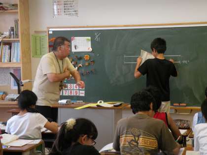 6年生の4時間目は算数です。分数の授業です。少人数算数なので2クラスを3クラスにわけて学習します。1組 増田先生、2組 堤先生 少人数 河合先生です。習熟度別なのでクラスにより人数が違います。しかし、どのクラスも子どもたちは熱心に授業に取り組んでいます。(校長 箭内)