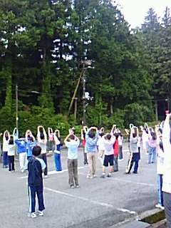 日光2日目の朝も晴れです。朝の体操をして今日の戦場が原ハイキングにそなえます。子どもたちはみな元気です。