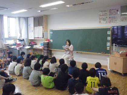 水曜日は「朝読書」です。今日は京西文庫の方々が「読み聞かせ」をしてくださいました。1年生から6年生まで全クラスです。