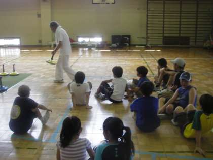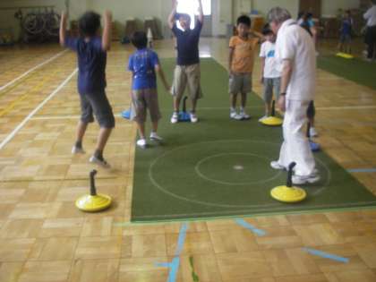 29日京西アカデミー、体育館では、「ユニカール」をやっていました。
