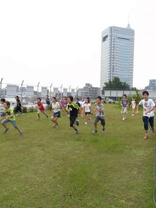 屋上の班は「だるまさんがころんだ」をしていました。屋上の縦長のスペースが、「だるまさんがころんだ」にはぴったりのようです。全学年が一緒になって、元気よく遊んでいました。