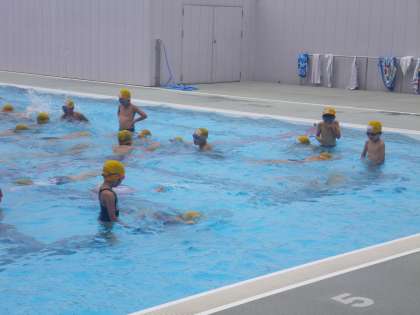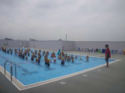 今日は2年生の1学期最後のプールです。今日はちょっと涼しいようです。でも、プールのなかの子どもたちはとても楽しそうです。夏休みも元気にプールに来てください。