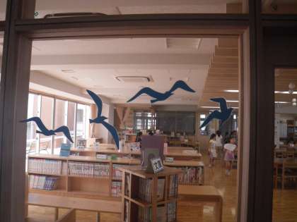子どもたちが好きな場所の一つが図書室です。図書室の装飾が夏バージョンになっています。京西文庫プロジェクトの方々が作ってくださっています。有難うござします。図書室は夏休みの間、京西アカデミーのある時、プールのある時は9時から12時まで開いています。是非活用してください。<校長 箭内>