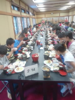 1日目の夕食です。椅子席です。温泉に入ってサッパリしてからの夕食です。