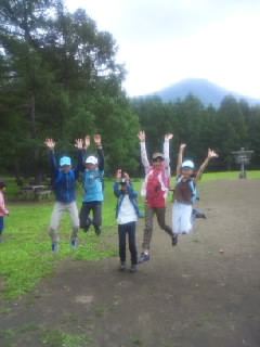 小田代が原ハイキングは変更になりました。歩くコースに熊が出たからです。三本松で昼食です。最後の赤沼から竜頭の滝まて歩きます。男体山をバックにジャンプです。