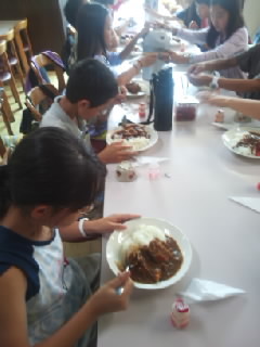 最後の昼食です。カツカレーです。東照宮見学が終わり、カツカレーです。次は大谷川公園にいく予定です。蒸し暑い天気です