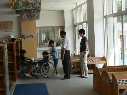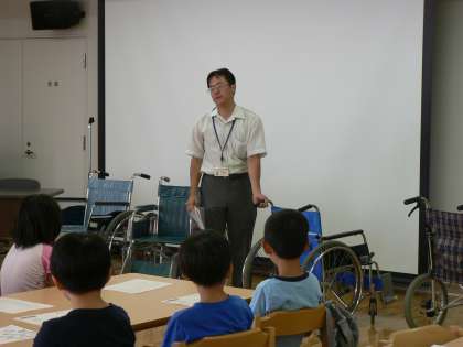 社会福祉協議会の皆さんが講師となり、福祉体験の講座が開かれました。最初に多目的室で福祉にかかわるレクチャーを受けた後、二人一組になって車いす体験を行いました。学校の中を講師の先生方に付き添っていただきながらめぐりました。昇降口の段差を越えるのに苦労した子もおり、貴重な体験になったようです。(副校長 藤咲)