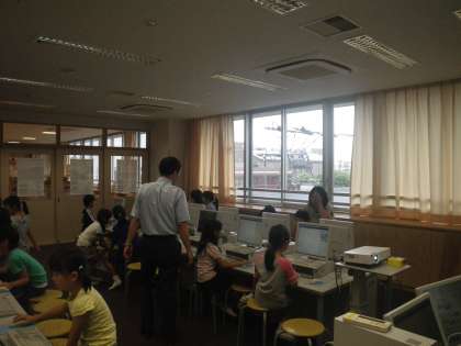 今日のアカデミーは「パソコンで暑中見舞いを作ろう」です。学校運営委員の古市さんが講座を持ってくださいました。低学年でも作れます。お手伝いの保護者の方も来てくださいました。ありがとうございました。(校長 箭内)