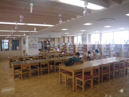 屋上では水泳をしていますが、図書室では静かに本を読んでいます。涼しいところで本を読み浸れるのは贅沢なことです。毎日9時〜12時まで図書室は開放しています。保護者の方が来てくださり開放してくださっているのです。ありがとうございます。