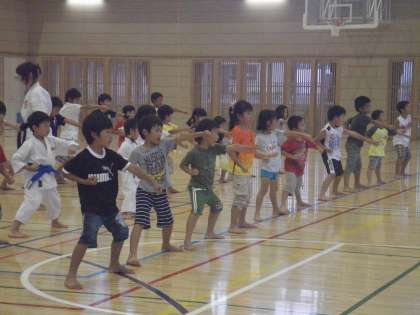 午後の体育館から気合の入った掛け声が聞こえてきます。空手道教室です。学校運営委員の長谷川さんがご自身の師匠も交えて指導してくださいました。真っ白い道着を着て練習する子、初めて空手に挑戦する子、どの子も背筋が伸び、気合が入っています。現在では礼儀を学べるのは、武道、お茶・お花などの伝統文化、古典芸能の中でしかない、と言われます。日本の伝統的なものは、これからも大事にしていかなければと思います。長谷川さんも京西アカデミーに毎年講座を持ってくださっています。ありがとうございます。