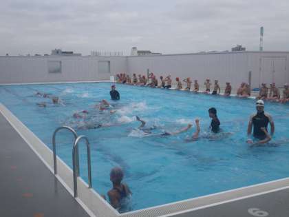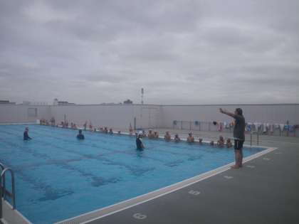この数日、朝の天候が思わしくありません。しかし、水温は高いので多少の雨でも出来るだけ実施するようにしています。今日は涼しい感じですが雨ではありません。高学年がプールで水しぶきをあげています。指導する先生も気合が入ります。少しでも子どもたちの泳ぎを上達させたいからです。水泳は基本的なことを何度も何度も練習し、自然に上達していくこともありますが、先生の一言で、ひょいとうまくなることもよくあります。なにより楽しむことが大事なのでしょう。私は沢の滝つぼなどで水中メガネをつけてもぐり、岩魚を見ることが大すきです。(校長 箭内)