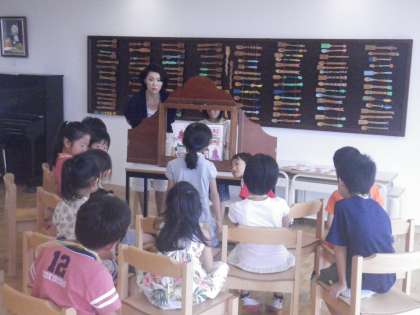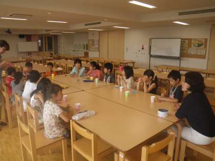 対象は低学年と中学年です。はじのあいさつ、ビンゴゲーム、クロスカルチャー(紙芝居)、フルーツバスケットと15分を一つのまとまりとして楽しく英語に親しんでいます。英語指導は二人ともプロの方なので、楽しく講座が進みます。英語に抵抗がなくなり勉強してみようと思う子が増えたのではないかなと思います。楽しい講座をありがとうございました。(校長 箭内)