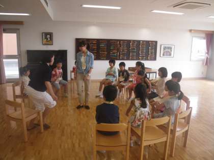 今日の京西アカデミーは「レッツ エンジョイ イングリュッシュ」です。講師は保護者でもある熊取谷 美和子さんです。それに 富田先生(熊取谷さんのお友達)です。