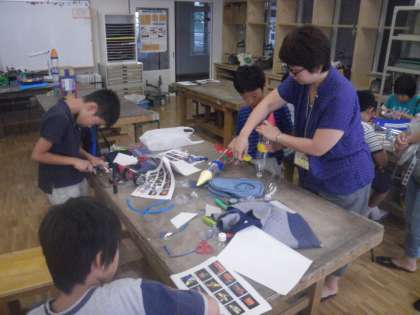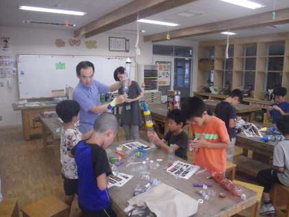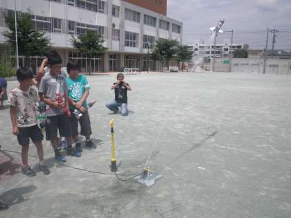 今年で三年目となります。学校運営委員の古市実裕さんが開いてくださるペットボトルロケット作りです。ペットボトルを三つ使ってロケットを作ります。4年生以上が参加ですからロケットは全員ほどなく完成です。とはいえ、お手伝いの保護者の方が来てくださりとても助かりました。完成したロケットを持って校庭に集合です。水を入れ、空気入れでロケットを飛ばします。勢いよく、遠くまで跳んでいきます。星出さんのように宇宙に飛び立つ人が京西小学校からでるかもしれません。ありがとうございました。
