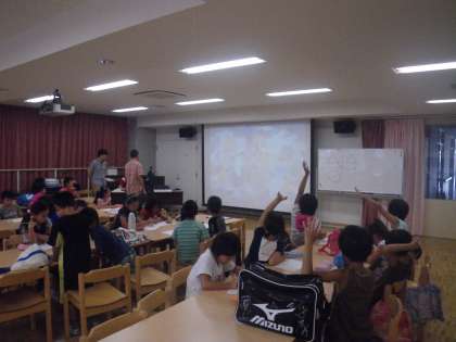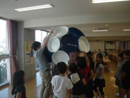前半はプリントをもとに映像を使いながら学習が進みます。後半はプラスチックのお皿でドームの部屋を作ります。毎年ドームの部屋ができると子どもたちは熱狂します。中に入りたいのです。順番に中に入ります。資料の準備、材料の手配等ありがとうございました。これで京西アカデミー前半の部は終わりです。後半も欠席せずに参加するようにしてください。(校長 箭内)