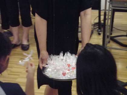 最後に子どもたちにお話の中に出てきたこんぺい糖がプレゼントされました。ありがとうございました。(校長 箭内)