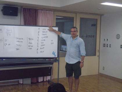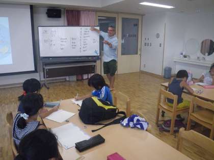 京西アカデミー、フランス語入門です。講師はポイユ エマニュエルさんです。フランスの方のようです。京西アカデミーでは初めての講座です。保護者、地域の方々が積極的にアカデミーに参加してくださり、講座を持ってくださり、こんなに嬉しいことはありません。映し出された世界地図は、普段見慣れている世界地図とはちょっと違います。フランスが世界地図の真ん中に書かれています。日本だと日本が中心に書かれています。国により地図の国の書き方が違います。フランス語入門に参加した子どもたちは一生懸命にノートに書いています。普段と違う勉強に緊張していたのかもしれません。京西アカデミーの講座は本当にバラエティーに富んでいます。ありがとうございました。(校長 箭内)