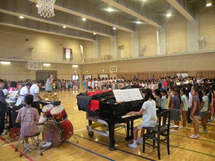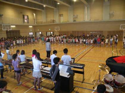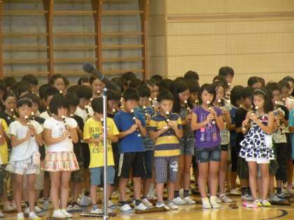 12日木曜日は音楽朝会です。今回は「リコーダーコンサート」です。最初に全員合唱をします。そして、3年生から順番に演奏をしていきます。初めてリコーダーを習っている3年生も上手です。学年が上がるごとに演奏する曲目も難しいものになっていきます。最後の6年生はアルトリコーダーも使っての演奏でした。演奏の音が伝えられないのが残念です。(校長 箭内)