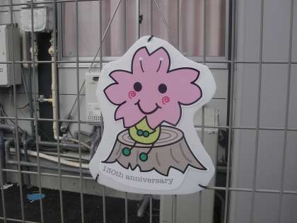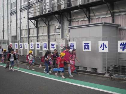 3日の夕方に「祝 創立130周年 京西小学校」の看板が取り付けられました。真中にはさくらちゃんがいます。