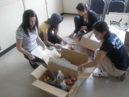 6日(日)は最後の片づけです。通路を掃き、荷物を片づけ、借りていた机などを返しました。机は用賀中学校からお借りしました。レンタカーで運ぶと、お父さん方がたくさん集まっていました。