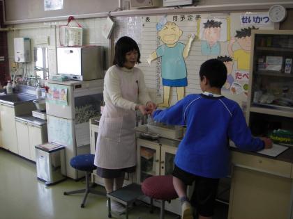 3月7日(金)保健室では養護の 植田 順子先生が子どもたちへの対応をしています。