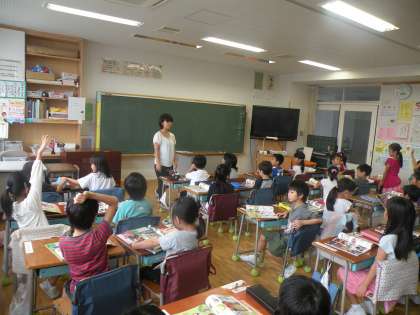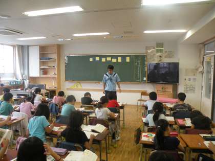 駆け足で教室参観をしています。1年3組小川学級は生活科です。上野動物園に遠足で行ったことをもとに学習を進めています。2年2組大山学級は算数でした。足し算の勉強です。3年2組山本学級は国語です。部首についての学習を進めていました。どの学級も落ち着いた授業態度で子どもたちは頑張っています。