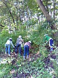 下草の細い木を刈り取りました。ちょっと刈るだけで汗がどばどばと流れおちます。意外と子どもたちは楽しんで取り組んでいました。