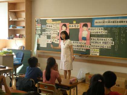 3日、4年2組は保健の授業でした。植田先生が指導していました。思春期に向けて男の子、女の子の成長についての授業です。きちんと理解することが大切な内容です。