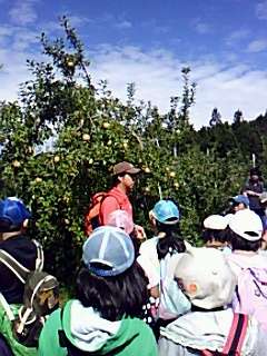 村巡りはカントリーガイドウオークとよんでいます。道祖神は昔は道標だった。飢饉の時などに作られている。リンゴは旧約聖書の時から作られている。などいろいろ教えてくれています。