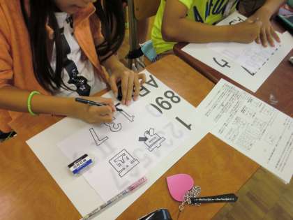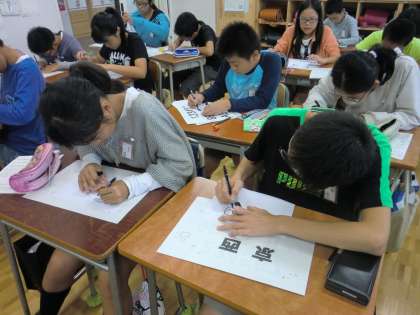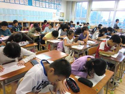 今日は6年1組も2組も、当日胸につけるゼッケンを書きました。
